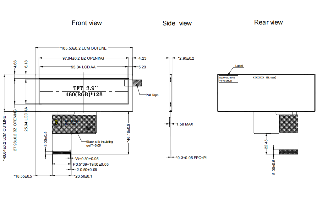 3.9 Inch 480(horizontal)*128(Vertical) Bar type TFT-LCD Module with RGB Interface, 500nits